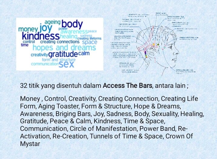 Access bars has assisted thousands of people to change many aspects of their body and their life including sleep health and weight money sex and relationships anxiety stress and so much more. These points aka the bars store the electromagnetic component of all the thoughts stress and locked up energy in your mind and body. At worst you will feel like you have just had a phenomenal massage. Access bars is an energetic body process involving gentle touching of 32 points on your head.